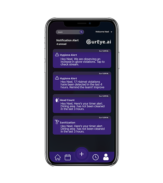 OurEye alerts the user if any SOP deviations, or security/safety threats are detected.